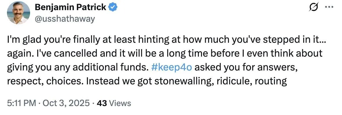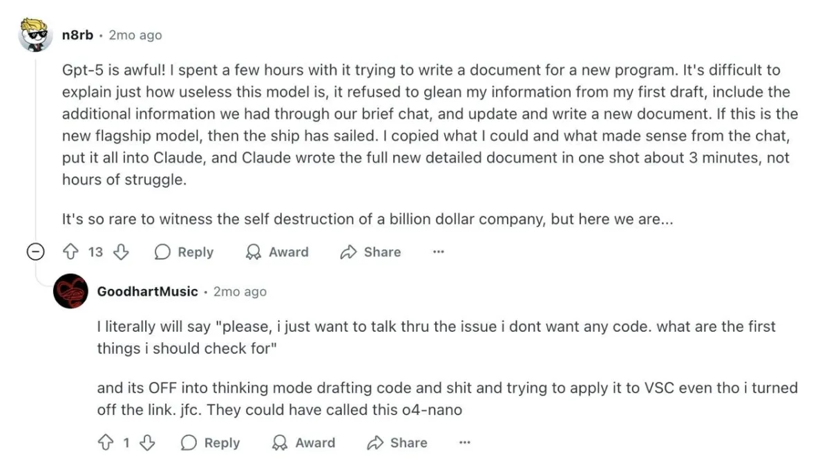 Sparking a "Let us Keep 4o" movement on X and a 1,000+ comment "GPT-5 is Awful" Reddit post.